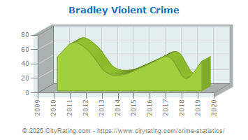 The city violent crime rate for Bradley in 2019 was lower than the