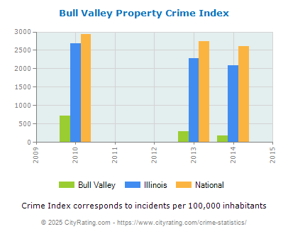 average by 75.98% and the city property crime rate in Bull Valley was lower than the