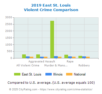 The city violent crime rate for East St. Louis in 2019 was higher than the