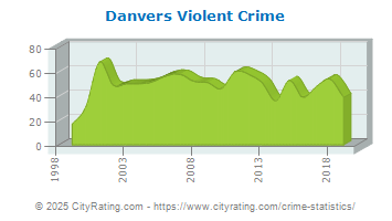 Danvers crime statistics report an overall downward trend in crime based on data from 21 years with violent crime increasing and property crime decreasing. Based on this trend, the crime rate in Danvers for 2025 is expected to be lower than in 2019.