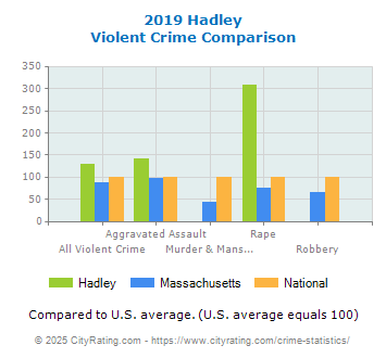 In 2019 the city violent crime rate in Hadley was higher than the
