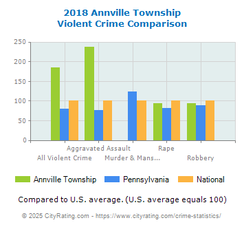 In 2018 the city violent crime rate in Annville Township was higher than the