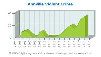 The city violent crime rate for Annville Township in 2018 was higher than the