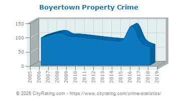 average by 87.05% and the city property crime rate in Boyertown was lower than the