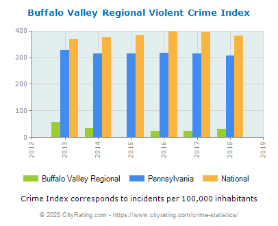 In 2018 the city violent crime rate in Buffalo Valley Regional was lower than the
