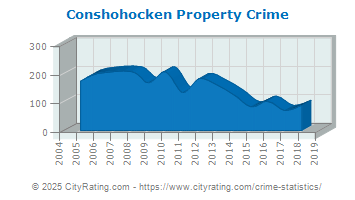 average by 83.74% and the city property crime rate in Conshohocken was lower than the
