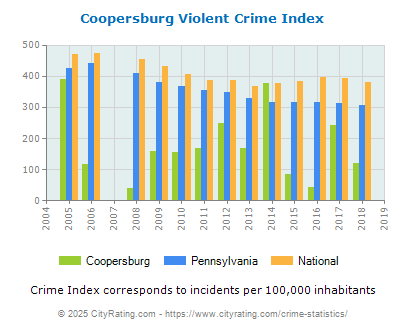 The city violent crime rate for Coopersburg in 2018 was lower than the