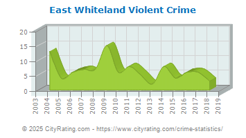 In 2018 the city violent crime rate in East Whiteland Township was lower than the
