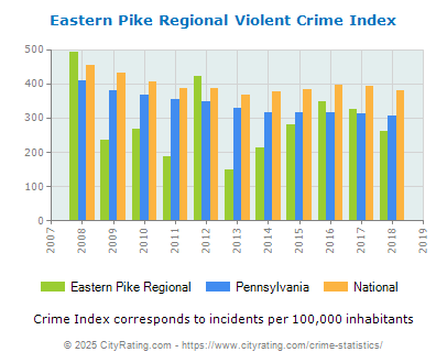 In 2018 the city violent crime rate in Eastern Pike Regional was lower than the