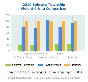 In 2019 the city violent crime rate in Ephrata Township was lower than the