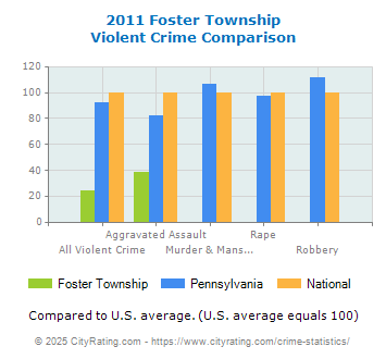 In 2011 the city violent crime rate in Foster Township was lower than the