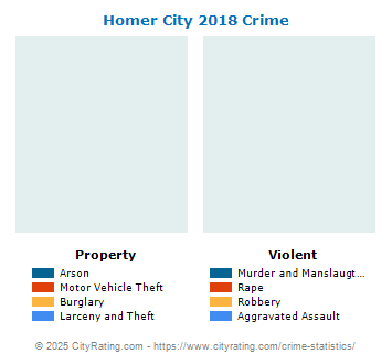 crime rate data displayed above was generated from the trends and crime data available from previous years of actual reported data. In this case, the Homer City crime report data for 2025 was projected from 8 years of actual data. The last year of actual available crime data, as reported above, was 2018.