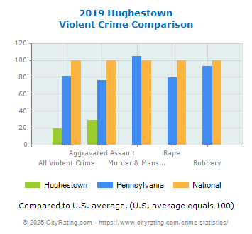 In 2019 the city violent crime rate in Hughestown was lower than the