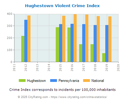 The city violent crime rate for Hughestown in 2019 was lower than the