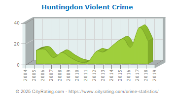 In 2018 the city violent crime rate in Huntingdon was higher than the