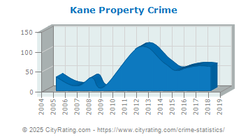 Kane crime statistics report an overall upward trend in crime based on data from 11 years with violent crime decreasing and property crime increasing. Based on this trend, the crime rate in Kane for 2025 is expected to be higher than in 2018.