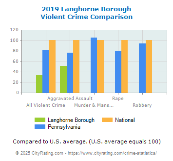 In 2019 the city violent crime rate in Langhorne Borough was lower than the