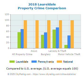 average by 66.3% and the city property crime rate in Laureldale was lower than the