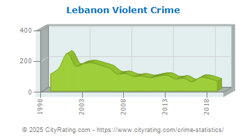 The city violent crime rate for Lebanon in 2019 was lower than the
