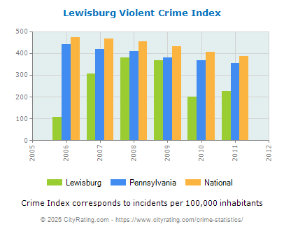 In 2011 the city violent crime rate in Lewisburg was lower than the