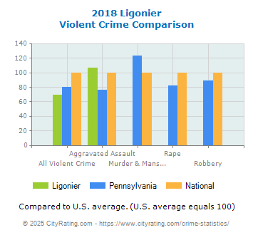 In 2018 the city violent crime rate in Ligonier was lower than the
