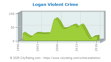 In 2018 the city violent crime rate in Logan Township was lower than the
