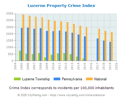 average by 100% and the city property crime rate in Luzerne Township was lower than the