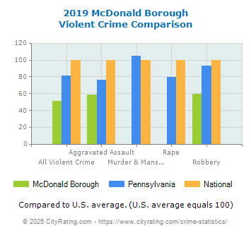 In 2019 the city violent crime rate in McDonald Borough was lower than the