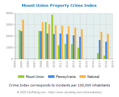 average by 77.8% and the city property crime rate in Mount Union was lower than the