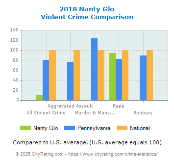 In 2018 the city violent crime rate in Nanty Glo was lower than the