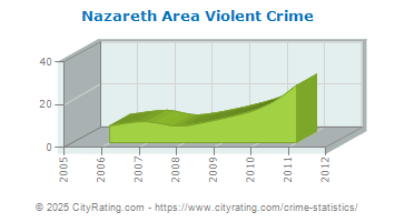 The city violent crime rate for Nazareth Area in 2011 was higher than the