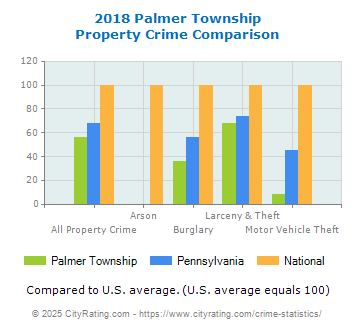 average by 84.12% and the city property crime rate in Palmer Township was lower than the
