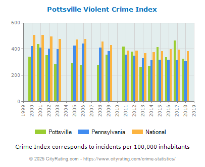 In 2018 the city violent crime rate in Pottsville was higher than the