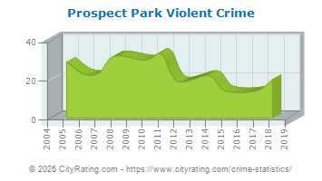 Prospect Park crime statistics report an overall downward trend in crime based on data from 11 years with violent crime decreasing and property crime decreasing. Based on this trend, the crime rate in Prospect Park for 2025 is expected to be lower than in 2018.