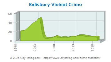 In 2019 the city violent crime rate in Salisbury Township was lower than the