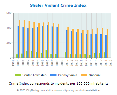 In 2018 the city violent crime rate in Shaler Township was lower than the
