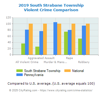 In 2019 the city violent crime rate in South Strabane Township was lower than the