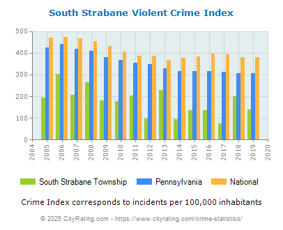 The city violent crime rate for South Strabane Township in 2019 was lower than the