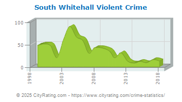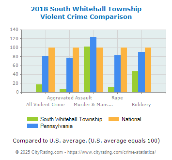 In 2018 the city violent crime rate in South Whitehall Township was lower than the