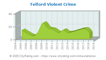 Telford crime statistics report an overall downward trend in crime based on data from 11 years with violent crime decreasing and property crime decreasing. Based on this trend, the crime rate in Telford for 2025 is expected to be lower than in 2018.