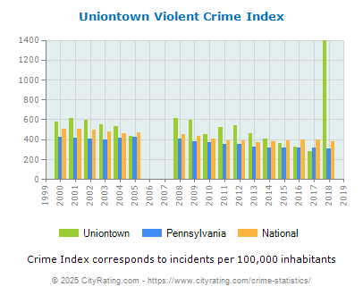 The city violent crime rate for Uniontown in 2018 was higher than the