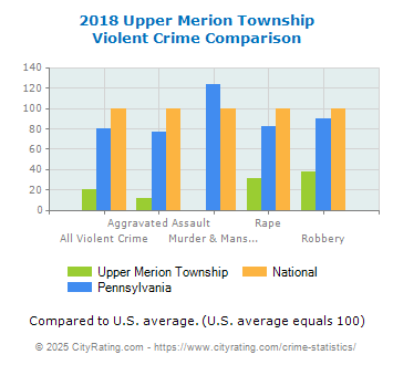 In 2018 the city violent crime rate in Upper Merion Township was lower than the