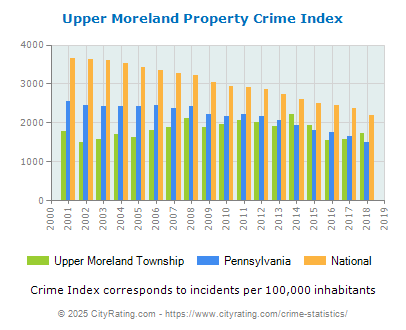 average by 76.09% and the city property crime rate in Upper Moreland Township was lower than the