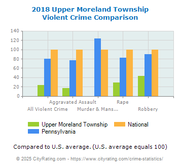 In 2018 the city violent crime rate in Upper Moreland Township was lower than the