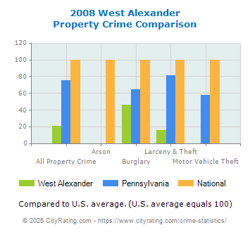 average by 100% and the city property crime rate in West Alexander was lower than the