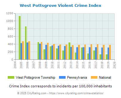 The city violent crime rate for West Pottsgrove Township in 2019 was lower than the
