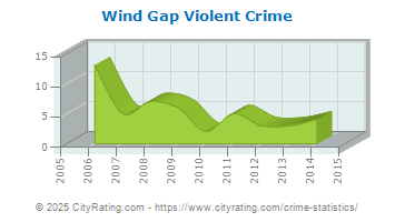 In 2014 the city violent crime rate in Wind Gap was lower than the