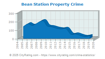 average by 31.65% and the city property crime rate in Bean Station was lower than the