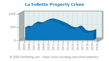 by 31.36% and the city property crime rate in La Follette was higher than the