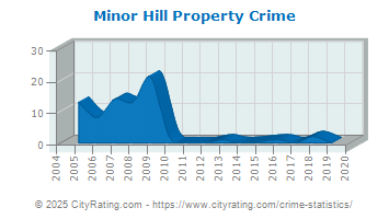 by 100% and the city property crime rate in Minor Hill was lower than the